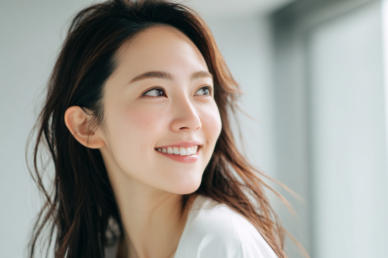 おでこの理想的なカーブは横から見たときに真ん中が丸く膨らんでいて全体的に美しいカーブを描いている姿です。おでこに丸みがあると、横から見たときもきれいですし、前から見ても若々しく華やかな印象になります。